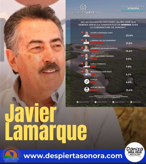 En la más reciente encuesta de Gobernarte sobre las próximas elecciones 2027 en el Estado de Sonora, según los resultados se muestra un escenario arrasador para Morena con un 41.9% de las preferencias electorales, le siguen muy de lejos el PAN con 16.5% y el PRI con un 10.3%, lo que significa que ni en alianza alcanzarían al partido guinda.