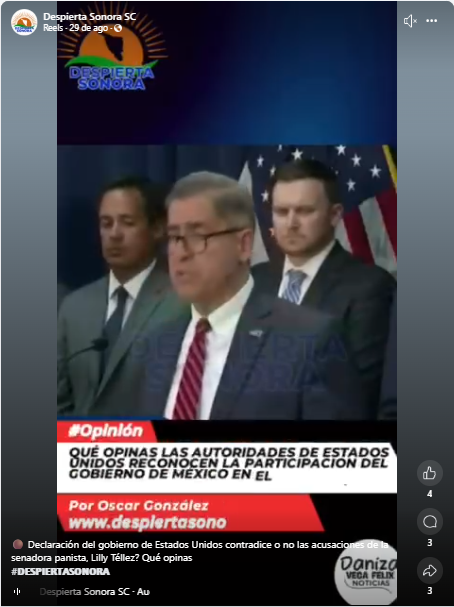 Declaración del gobierno de Estados Unidos contradice o no las acusaciones de la senadora panista, Lilly Téllez? Qué opinas