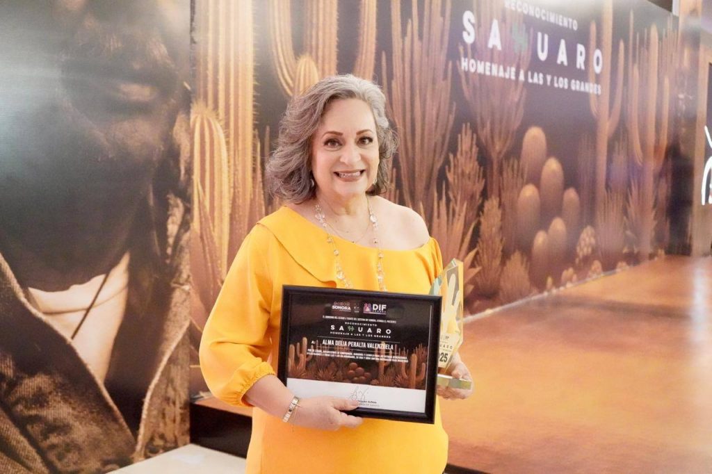 La directora general del Sistema DIF Sonora, Lizeth Vásquez Ochoa, señaló que el Reconocimiento Sahuaro es una oportunidad para agradecer públicamente a quienes han dejado huella en la sociedad y han demostrado que la edad no es límite para seguir aportando.