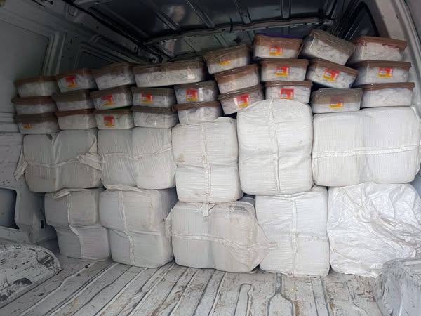 Al efectuarles una inspección, encontraron recipientes con droga sintética hecha piedra, con un peso de más de 3.5 toneladas.