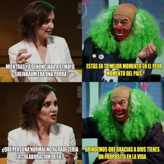 Lilly Téllez y Brozo; el payaso la llenó de elogios y hasta le dijo a la senadora panista que estaba “en su mejor momento, en el peor momento del país”