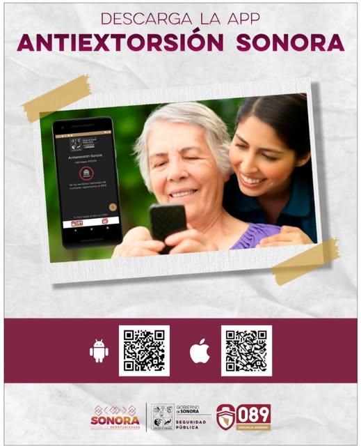 Hermosillo, Sonora; 31 de agosto de 2025.- Para prevenir que adultos mayores sean víctimas de una extorsión telefónica, el Gobierno de Sonora exhorta a descargar en sus celulares la aplicación Antiextorsión Sonora diseñada por la Secretaría de Seguridad Pública (SSP).