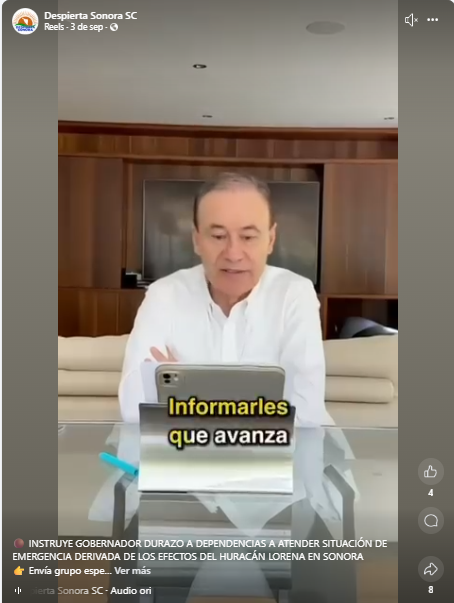 👉 Envía grupo especial a Ciudad Obregón para apoyar a comunidades afectadas por las intensas lluvias que se generarán por este fenómeno