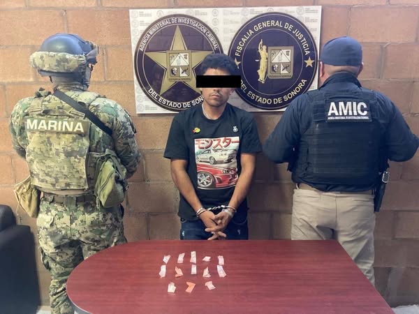 En la avenida Oaxaca de la colonia Sonora, se realizó la detención de Salvador Ponce López, de 37 años, quien portaba entre sus ropas 13 envoltorios conteniendo cristal, esto durante una acción de prevención en vías públicas del municipio.