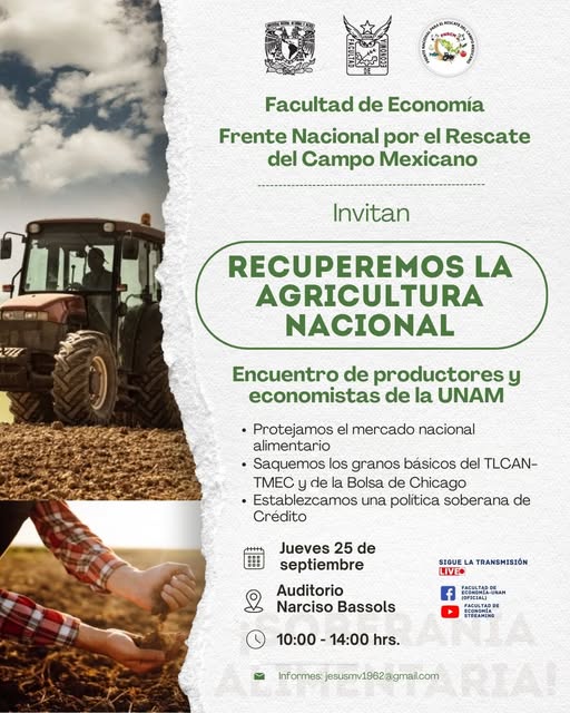 Convocan la facultad de Economía de la UNAM y el Frente Nacional por el Rescate del Campo Mexicano