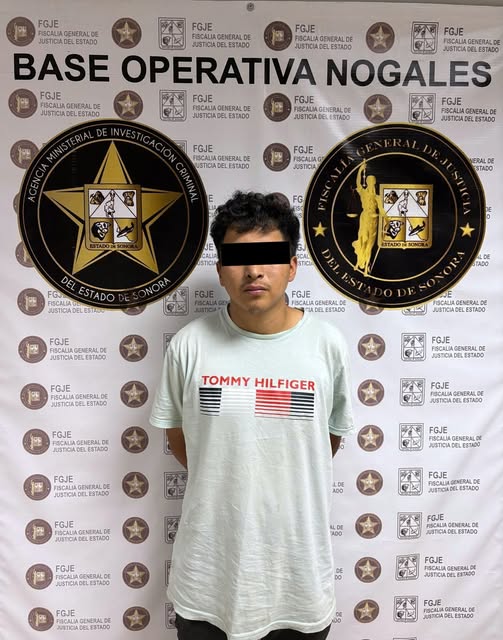 Nogales, Sonora, 12 de septiembre de 2025.- La Fiscalía General de Justicia del Estado de Sonora (FGJES), a través de la Agencia Ministerial de Investigación Criminal (AMIC), capturó a Mario Alberto “N”, alias “El Bolas”, de 25 años, originario de Tucson, Arizona, por su probable responsabilidad en el delito de homicidio calificado con premeditación y ventaja, en perjuicio de Gerardo Esteban “N”.