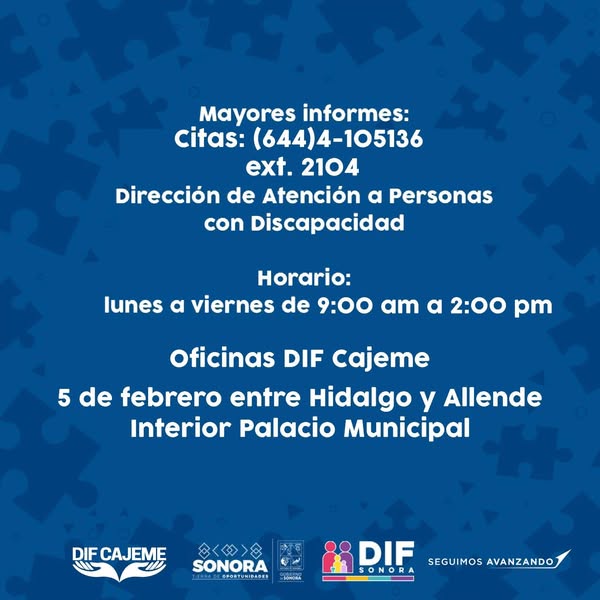 Para brindar una mejor atención, las y los interesados deberán agendar previamente su cita comunicándose al número telefónico 6444-10-51-36, extensión 2104, donde personal de DIF Cajeme proporcionará la información necesaria sobre los requisitos y el proceso de registro.