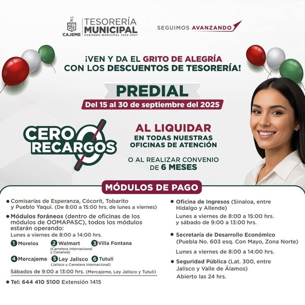¡Da el Grito de Alegría con los descuentos de Tesorería de Cajeme!
