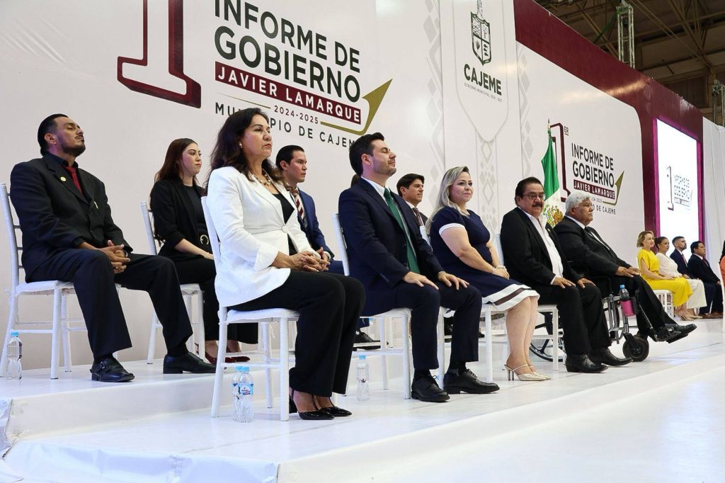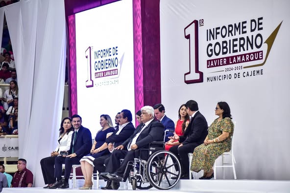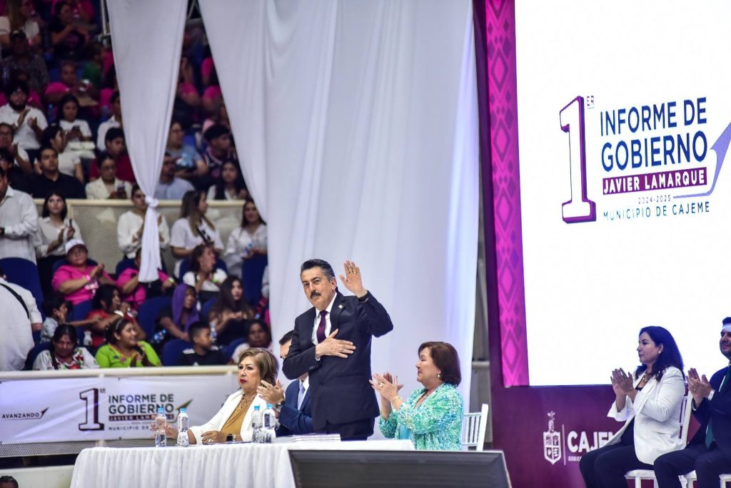 “Hoy nos convoca un acto de responsabilidad democrática, rendir cuentas claras al pueblo, hace un año la ciudadanía me confirmó su confianza para continuar conduciendo los destinos de nuestro querido municipio de Cajeme, para seguir avanzando en la consolidación del proyecto de Gobierno en este segundo período consecutivo, para continuar cercanos, honestos y con compromiso de transformación, lo dijimos desde el inicio, nuestro compromiso es gobernar bajo los principios de la Cuarta Transformación, hoy, tras doce meses de servir a Cajeme, puedo afirmar que seguimos avanzando; Cajeme avanza, Cajeme cambia, Cajeme se transforma”, expresó Javier Lamarque al rendir, ante miles de personas reunidas en la Arena ITSON, su primer informe anual de trabajo de la administración 2024-2027.