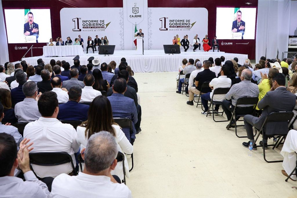 Con un formato ágil y sencillo, reforzado con vídeo, ante las y los integrante del cabildo cajemense, Senadoras y Senadores de la República, Legisladoras y Legisladores Federales, Diputadas y Diputados locales, funcionarias y funcionarios, representantes de Cámaras Empresariales, Rectores de diferentes Universidades, Sindicatos y la comunidad en general, el Presidente Municipal, entre otros logros del período que se informa, destacó que, en materia de Desarrollo Económico se trabajó en generar un entorno competitivo, atractivo y accesible para la inversión, facilitando la apertura de negocios, impulsando la gestión para la regularización de empresas y creando condiciones para el crecimiento económico sostenible.