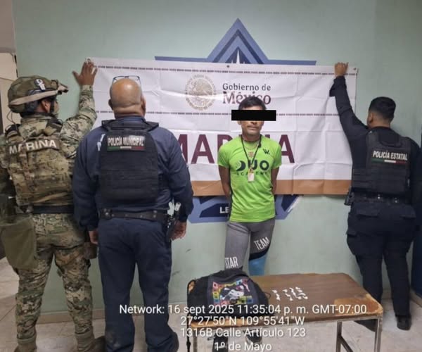 Como resultado de los operativos de vigilancia y prevención del delito implementados en coordinación, la Secretaría de Seguridad Pública Municipal de Cajeme, Policía Estatal y Secretaría de Marina lograron la detención de una persona por la probable comisión de delitos contra la salud.