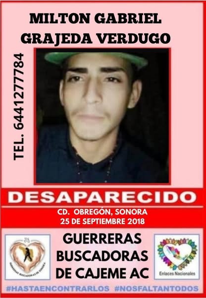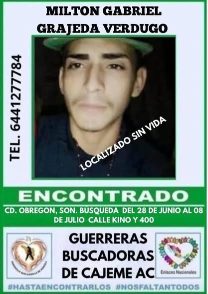 La angustia de no saber de él terminó para la familia de Milton Gabriel, su cuerpo estaba en la calle 400 y Kino en la antena donde se localizaron, 26 cuerpos más de fosas clandestinas en el Valle del Yaqui.