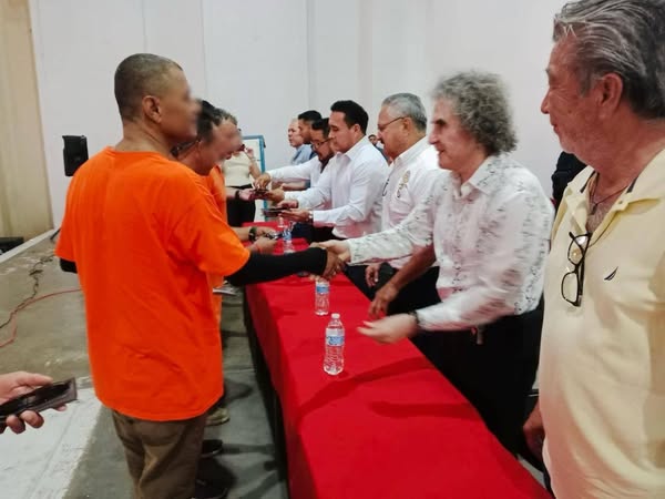 Durante la entrega también participaron Jorge Pesqueira Leal, presidente ejecutivo del Patronato para la Reincorporación Social, y autoridades de la Secretaría de Seguridad Pública (SSP).