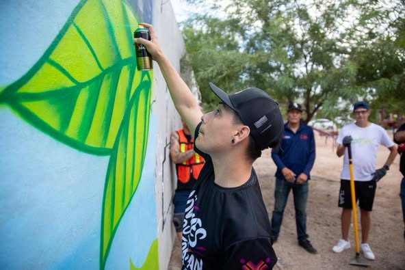 En Sonora, la actividad se desarrolló en la colonia Sahuaro Final, donde jóvenes plasmaron murales en las bardas del lugar y realizaron labores de limpieza y rehabilitación del espacio público.