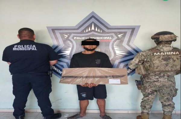 Durante los patrullajes preventivos, elementos de la SSPM recibieron un reporte vía radiofrecuencia C5i sobre una persona que se encontraba alterando el orden público en la intersección de las calles California y Flavio Bórquez, en la colonia Sochiloa. Al arribar al sitio, los oficiales observaron a un hombre que portaba un machete y lanzaba palabras altisonantes. El individuo, fue identificado como Brandon Iram “N.”, de 27 años, y fue asegurado por la probable comisión del delito de portación de arma prohibida.