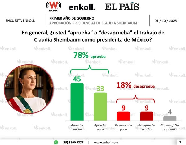 Presidenta Claudia Sheinbaum Pardo llega a su primer año de gobierno con un nivel de aprobación histórico.