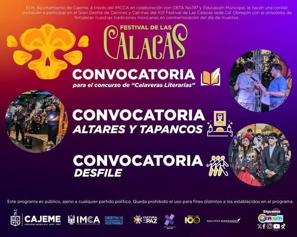 +Convocan a participar en el #MunicipioDeCajeme en el Festival Cultural de las Calacas 2025 #SeguimosAvanzando