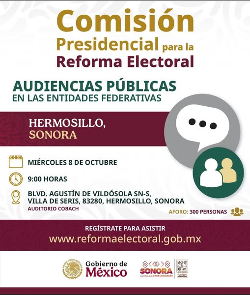 El próximo miércoles 08 de octubre Hermosillo será sede de las audiencias públicas para la Reforma Electoral.