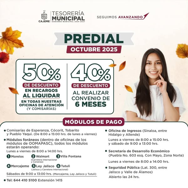 ¡Aprovecha octubre y cumple con Cajeme!