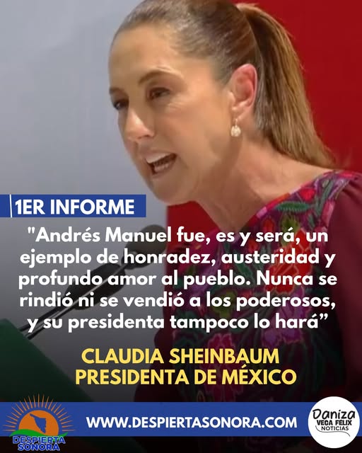 Claudia Sheinbaum Pardo #PresidentaDeMexico#PrimerInformeDeGobierno #𝗗𝗘𝗦𝗣𝗜𝗘𝗥𝗧𝗔𝗦𝗢𝗡𝗢𝗥𝗔 Navegación de entradas “El que roba al pueblo enfrenta la justicia, los recursos públicos son sagrados y se le regresan al pueblo en programas sociales y obras” “Entre 2018 y 2024 13.5 millones de mexicanos salieron de la pobreza, ese logro, aunque quieran, no lo podrán borrar”