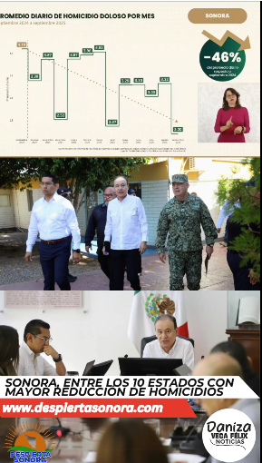 En la conferencia matutina de la presidenta Claudia Sheinbaum Pardo de este martes la secretaria Ejecutiva del Sistema Nacional de Seguridad Pública, Marcela Figueroa Franco, dio a conocer que Sonora cerró septiembre de este año con su promedio más bajo en materia de homicidios dolosos en un año, destacando una mejora sostenida del 46% en comparación con 2024.