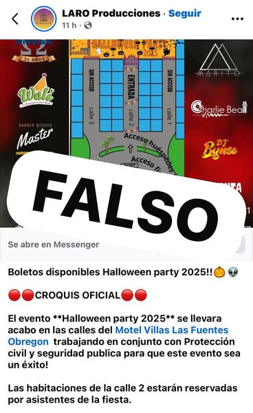 En redes sociales circula un documento sobre la realización de una fiesta de Halloween en los próximos días. Al respecto, se aclara que la Unidad Municipal de Protección Civil únicamente verifica las condiciones de seguridad del lugar donde se pretende llevar a cabo un evento, con el objetivo de salvaguardar la integridad de los asistentes.