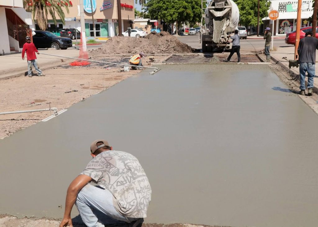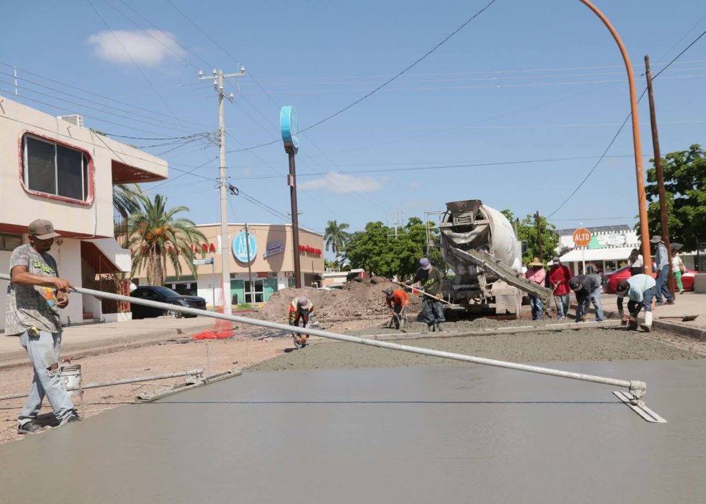 El Gobierno Municipal de Navojoa, que encabeza el presidente Jorge Alberto Elías Retes, realiza labores de rehabilitación sobre la calle Jesús Salido y Obregón, utilizando concreto hidráulico para mejorar la vialidad y garantizar la durabilidad de los trabajos.