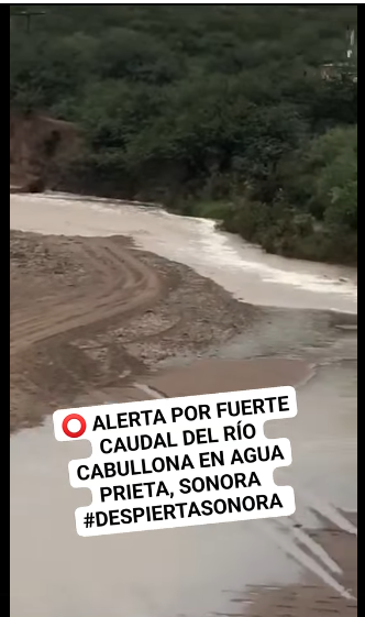 Alerta por fuerte caudal del Río Cabullona en Agua Prieta, Sonora