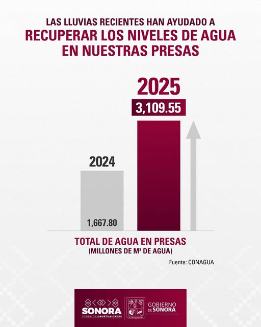 Las Presas de Sonora se ven favorecidas con las recientes lluvias. Debido a las precipitaciones se incrementó el acumulado de agua en cada una de ellas, lo que favorece a la recarga de los mantos acuíferos. #DESPIERTASONORA Navegación de entradas Radio Sonora cumple 43 años siendo una voz de la identidad y la cultura popular sonorenseSupervisa Gobernador Durazo comunidades afectadas por tormenta tropical Raymond y garantiza apoyos a familias