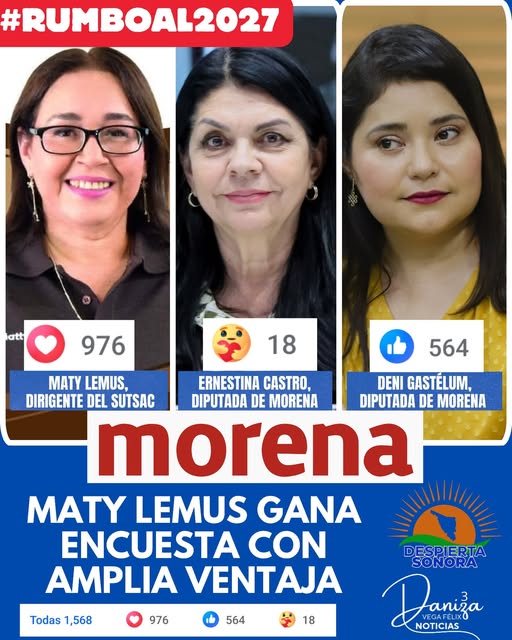 Según el ejercicio que realizamos este martes 14 de octubre donde le preguntamos a los ciudadanos de Cajeme ¿A quién de estas destacadas mujeres de Morena te gustaría ver en una boleta electoral en el 2027?