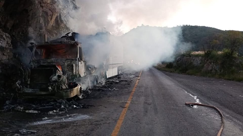 Debido al incendio de un tractocamión en el kilómetro 146 de la carretera Cananea-Ímuris, hay tránsito lento en la zona.