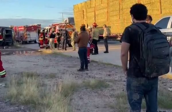 El camión volcó y quedó en medio de los carriles con resultado de al menos seis personas sin vida y alrededor de 16 personas heridas.
