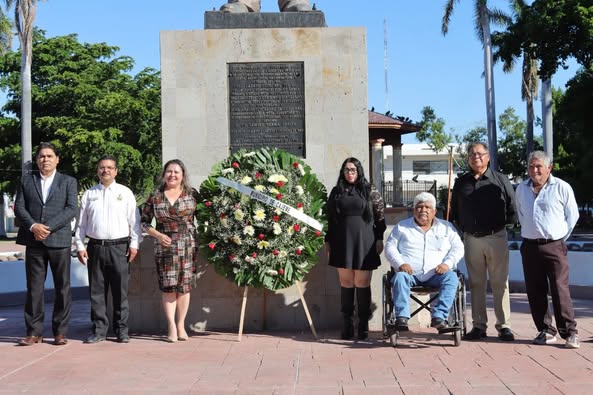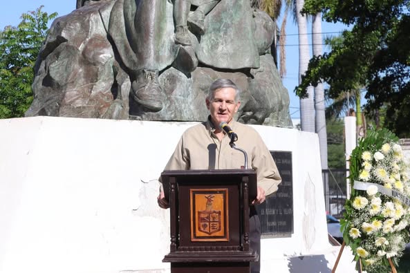 Mientras que en el monumento a los Pioneros, en el parque del mismo nombre, Jorge Antonio Barragán López, en representación del Secretario de Bienestar, Noé Alejandro Ibarra, recordó que este político sonorense nació en Guaymas un 25 de septiembre de 1877 y en 1913 se sumó a las fuerzas constitucionalistas encabezadas por Álvaro Obregón; fue gobernador interino de Sonora, y en 1924 fue elegido Presidente de la República, muriendo el 19 de octubre de 1945.