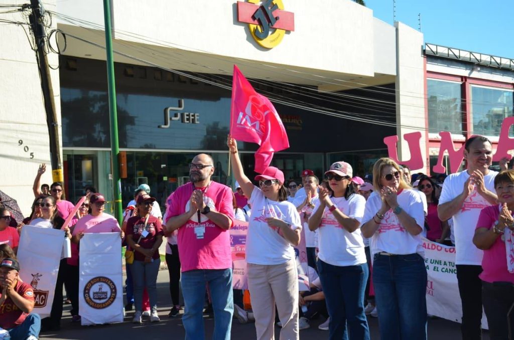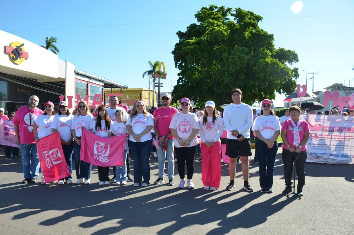 Con el propósito de promover la salud preventiva y fortalecer la conciencia sobre la detección oportuna del cáncer de mama, el Instituto Mexicano del Seguro Social (IMSS), en coordinación con la Dirección de Salud Municipal del Ayuntamiento de Cajeme, realizó la Caminata Rosa 2025, que tuvo como punto de partida la calle Guerrero y California, culminando avenida Sinaloa y Náinari.