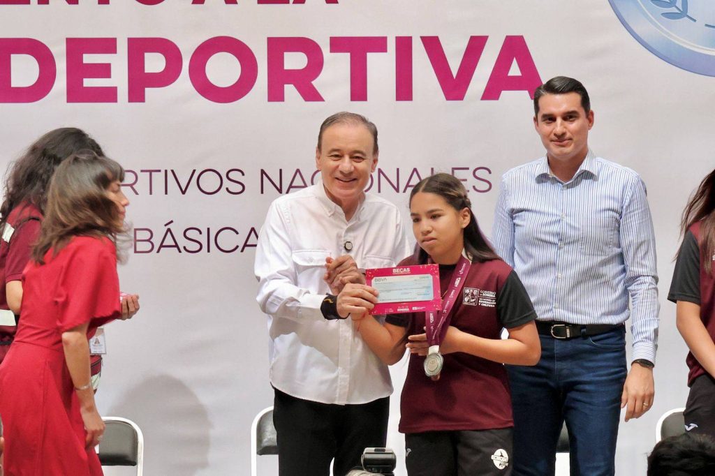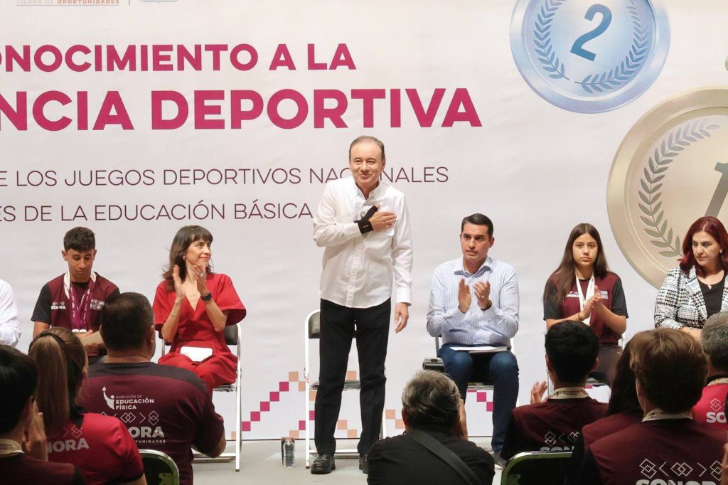 – El gobernador de Sonora entregó estímulos económicos a 139 atletas y entrenadores, por un monto de 5 millones 718 mil pesos, en reconocimiento a su esfuerzo y desempeño en las competencias Nacionales Escolares de Educación Básica.