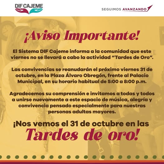 Este viernes no se llevará a cabo la actividad “Tardes de Oro”.