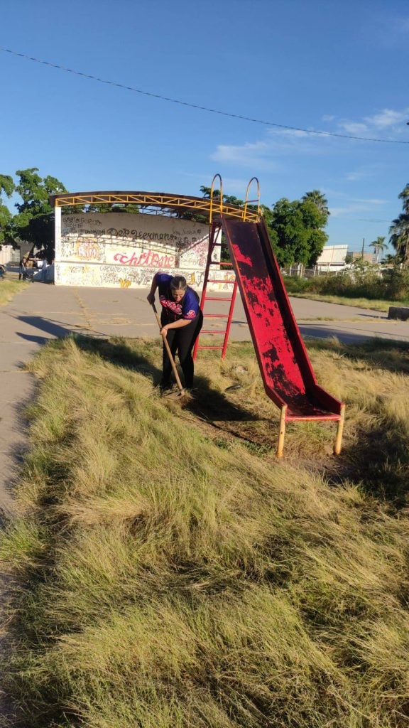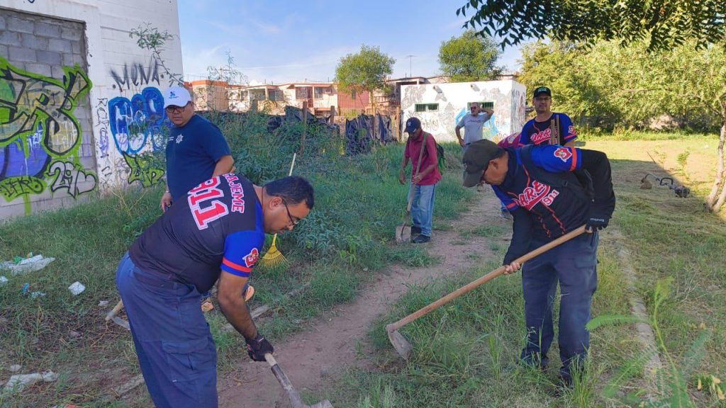 En el marco de las acciones de recuperación de espacios públicos y fortalecimiento del tejido social, personal de la Dirección de Programas Preventivos de la Secretaría de Seguridad Pública Municipal de Cajeme llevó a cabo una jornada de limpieza y mantenimiento en el parque ubicado a espaldas del plantel COBACH II, en la colonia Valle Dorado, así como en el parque de las calles Obrero Mundial y Chilpancingo de la colonia Primero de Mayo.