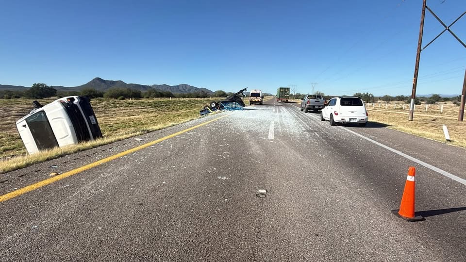 Debido a un accidente de un vehículo tipo pick up, mismo que dejó restos de vidrio sobre la cinta asfáltica, sin que hubiera personas lesionadas, hay tránsito lento en el kilómetro 27 del tramo carrtero Hermosillo-Magdalena.