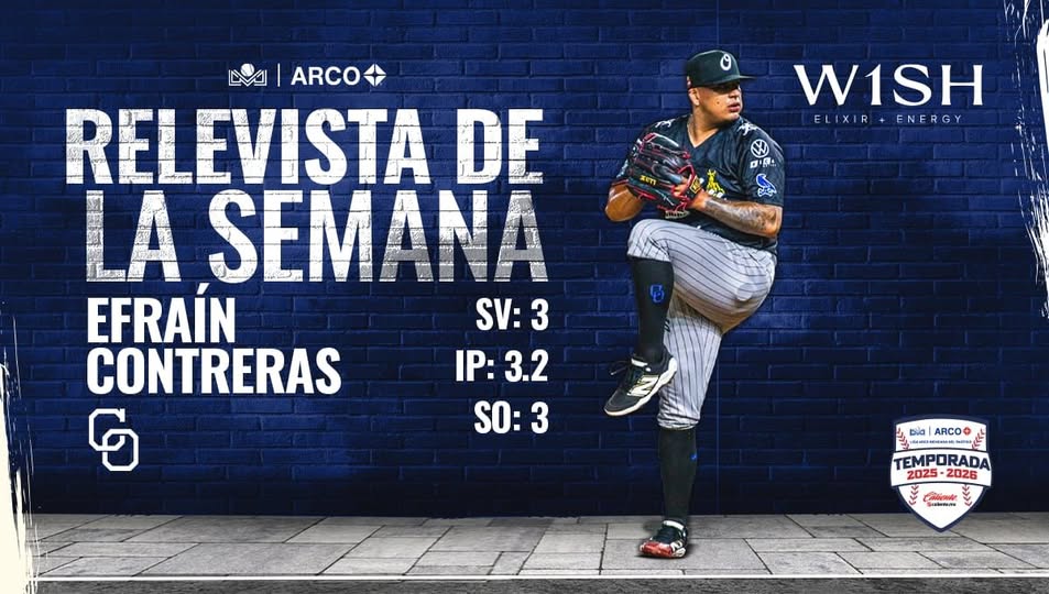 Con 3 rescates en igual número de oportunidades, Efraín Contreras de los Yaquis de Ciudad Obregón, ganó el reconocimiento a Relevista de la Semana, presentado por Wish.