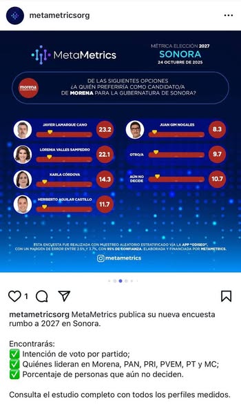 Javier Lamarque se posiciona una vez más como la figura con mayor respaldo ciudadano, al encabezar las encuestas recientes de preferencia electoral en Sonora, su trabajo cercano a la gente, las obras realizadas y el enfoque en la mejora de los servicios públicos han fortalecido la confianza de la población, que lo reconoce como el perfil con mayor experiencia para la gubernatura del Estado de Sonora en 2027