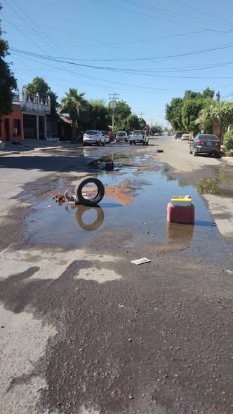 Los vecinos comentan que es una fuga recurrente y que ya tiene bastante tiempo y Agua Hermosillo “bien gracias”, mientras tanto el problema se agrava ya que está dañando más las calles.