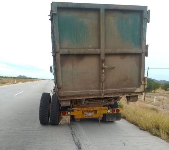 Debido a un percance con el neumático de un tractocamión en el kilómetro 151 en el tramo carretero Guaymas-Hermosillo, se recomienda precaución.