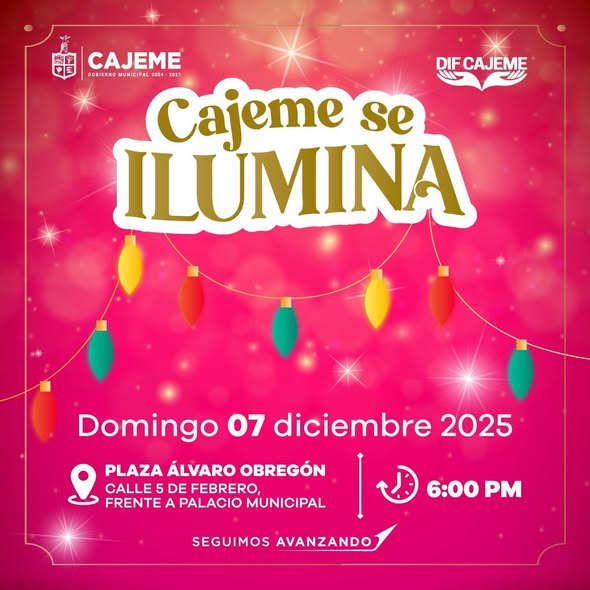 El Presidente Municipal Javier Lamarque, reiteró la invitación a todas las familias de Cajeme y a quienes visitan el municipio para asistir al Gran Encendido del Árbol Navideño 2025 “Cajeme se ilumina”, que se realizará este domingo 7 de diciembre a las 19:00 horas en la Plaza Álvaro Obregón.