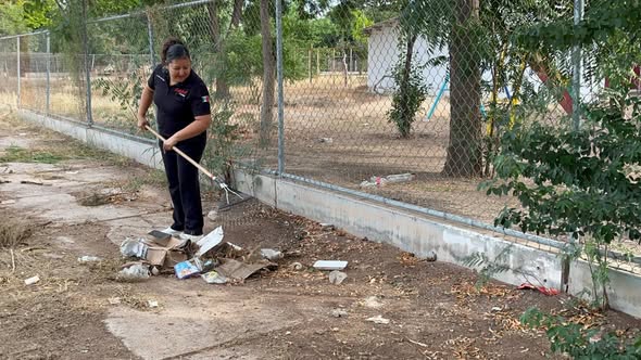 Con el objetivo de fomentar entornos seguros, limpios y adecuados para la convivencia, la Dirección de Programas Preventivos de la Secretaría de Seguridad Pública Municipal (SSPM) llevó a cabo una jornada de limpieza en la Unidad Deportiva de la colonia Cortinas.