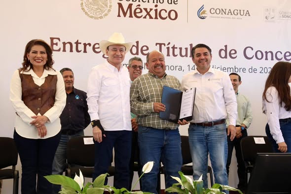 Hermosillo, Sonora; 14 de diciembre de 2025.- Con el objetivo de brindar certeza jurídica y fortalecer la productividad del campo en la entidad, el gobernador Alfonso Durazo Montaño, y Efraín Morales López, director general de la Comisión Nacional del Agua (Conagua), entregó títulos de concesión de agua para uso agrícola a usuarios del estado de Sonora.