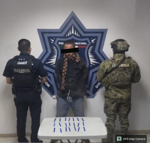Como resultado de los recorridos de vigilancia preventiva, elementos de la Secretaría de Seguridad Pública Municipal (SSPM), en coordinación con personal de la Secretaría de Marina, realizaron la detención de una persona del sexo masculino por su probable responsabilidad en el delito contra la salud, en la colonia Constitución.