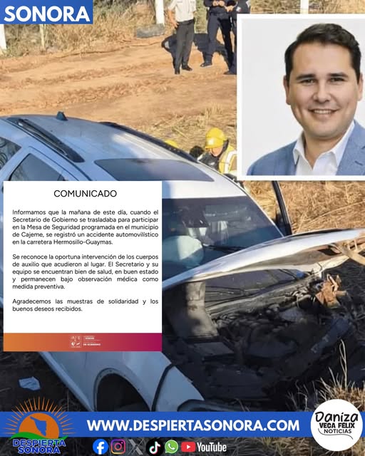 El funcionario del gobierno de Alfonso Durazo, se trasladaba esta mañana a Ciudad Obregón al momento del percance, el cual ocurrió en el tramo Hermosillo-Guaymas.