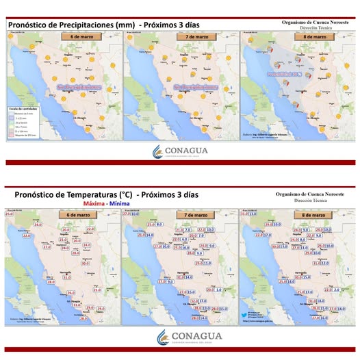 Hermosillo, Sonora; 6 de marzo de 2026.– El Gobierno de Sonora, a través de la Coordinación Estatal de Protección Civil (CEPC), informa que se espera un fin de semana en donde se sigan presentando temperaturas frías y frescas por las mañanas, así como tardes ligeramente calurosas, con posibilidades de lluvias a partir del domingo.
