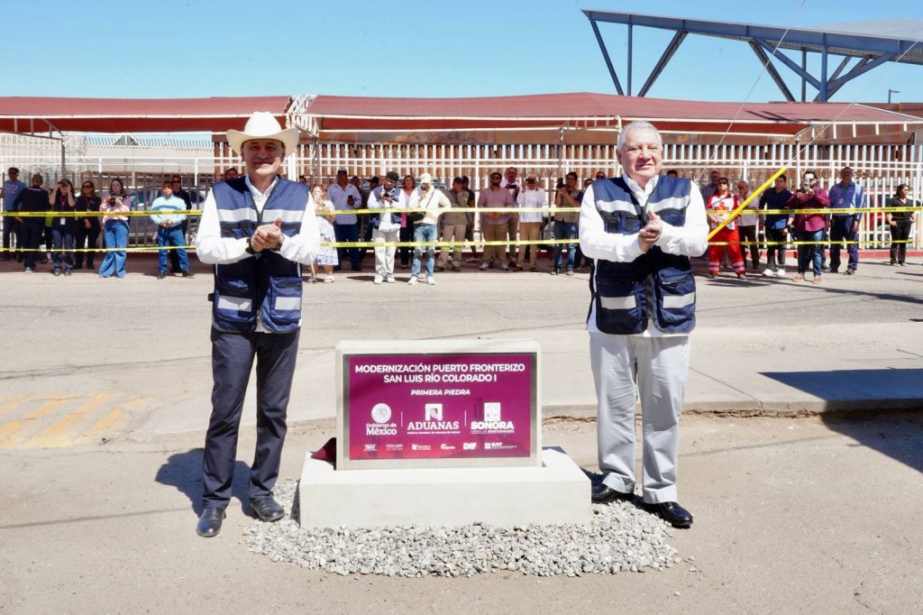 Junto al titular de la Agencia Nacional de Aduanas de México (ANAM), Rafael Fernando Marín Mollinedo, el gobernador Durazo durante la colocación de la primera piedra, destacó que con la modernización de la aduana de San Luis Río Colorado se fortalecerá la movilidad y seguridad fronteriza, se agilizará el cruce entre México y Estados Unidos mediante una mayor integración logística con el suroeste del vecino país, y se garantizarán operaciones más eficientes con equipo y tecnología.