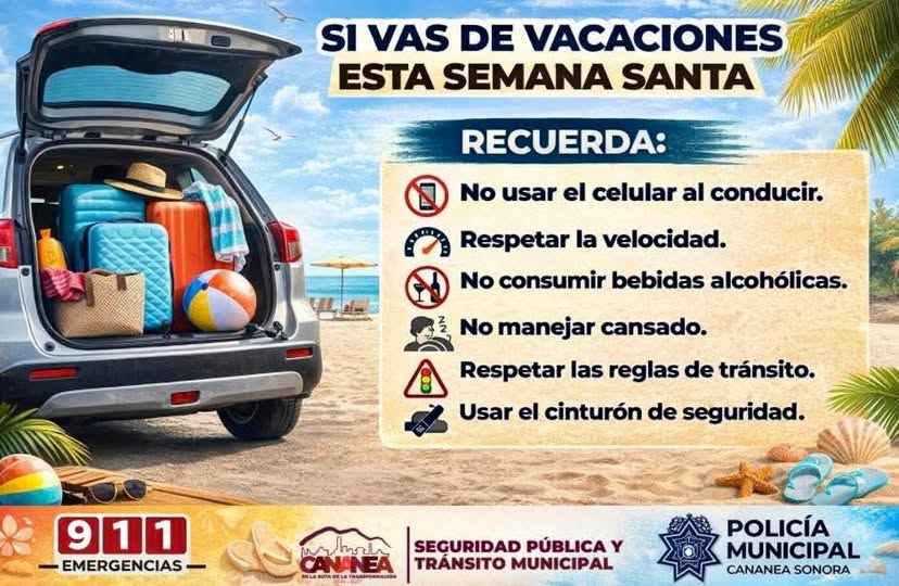 El Gobierno Municipal de Cananea, a través de la Comisaría General de Seguridad Pública, te invita a seguir estas recomendaciones si sales de vacaciones:
